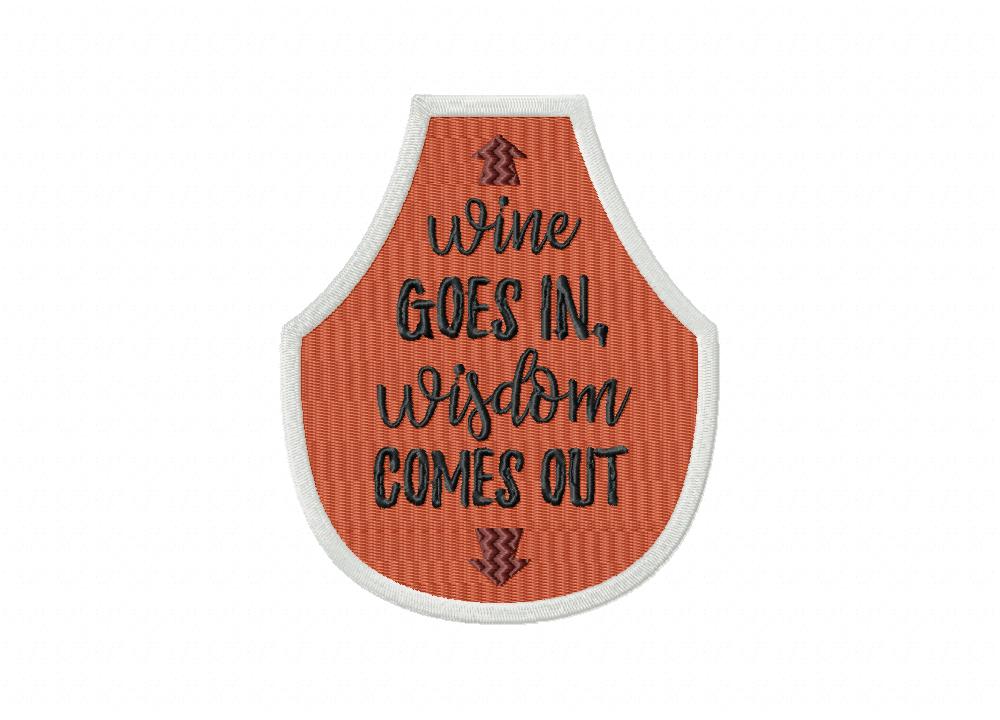 Wine Goes In, Wisdom Goes Out Stitched Embroidery Design