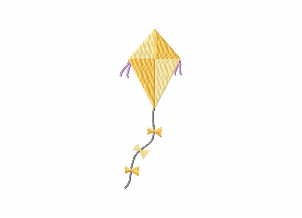 Yellow Summer Kite with Ribbon Machine Embroidery Design