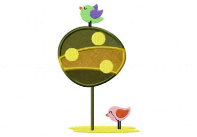 Plant and Birds Includes Both Applique and Stitched
