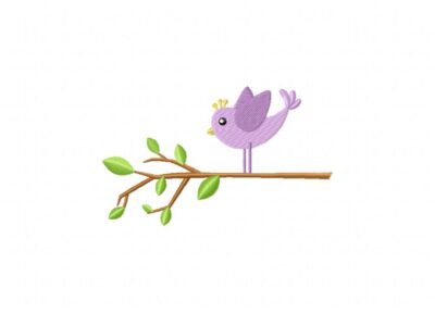 Purple Bird Branch Machine Embroidery Design
