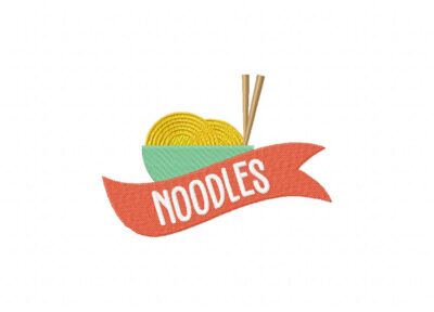 Hot Noodles with Label Includes both Applique and Stitch Embroidery Design