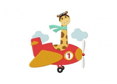 Blue Giraffe Plane Machine Embroidery Design